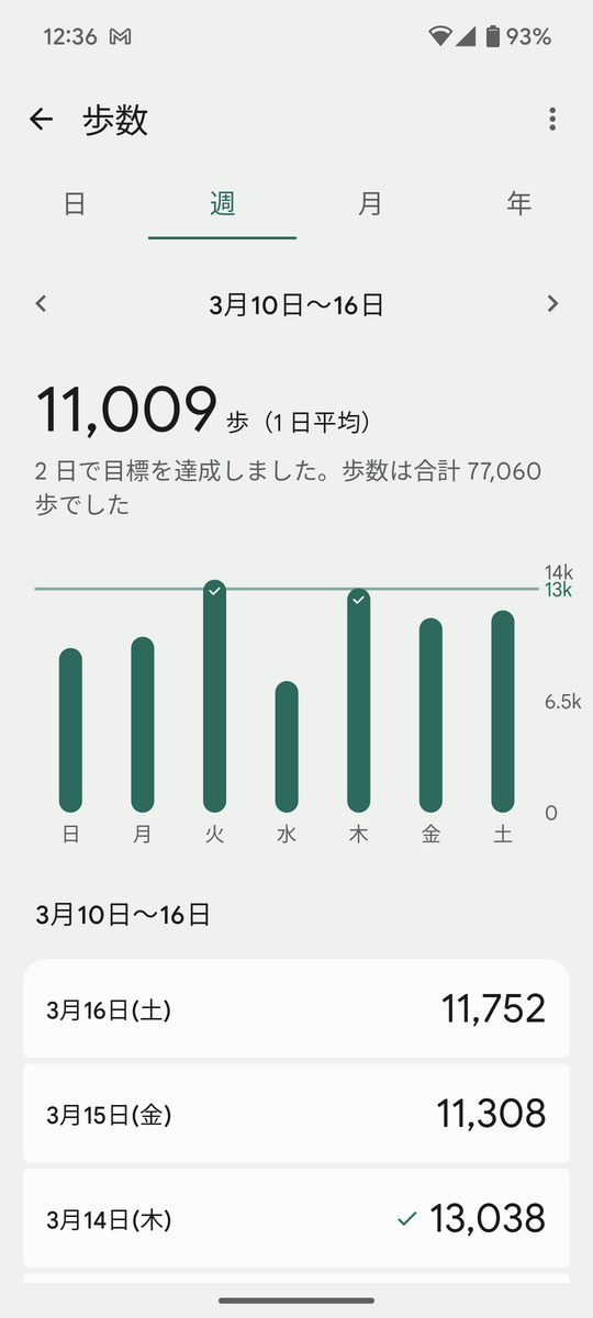 今週は仕事の日が多かったので仕事中には歩くのですが・・